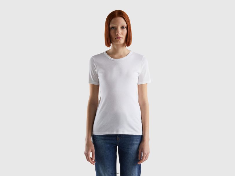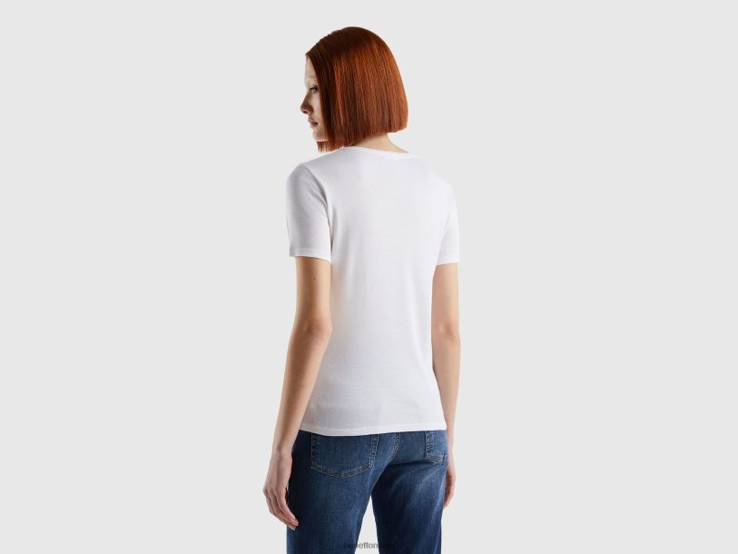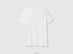 hvit Benetton kvinner langfiber t-skjorte i bomull 20TRB3901
