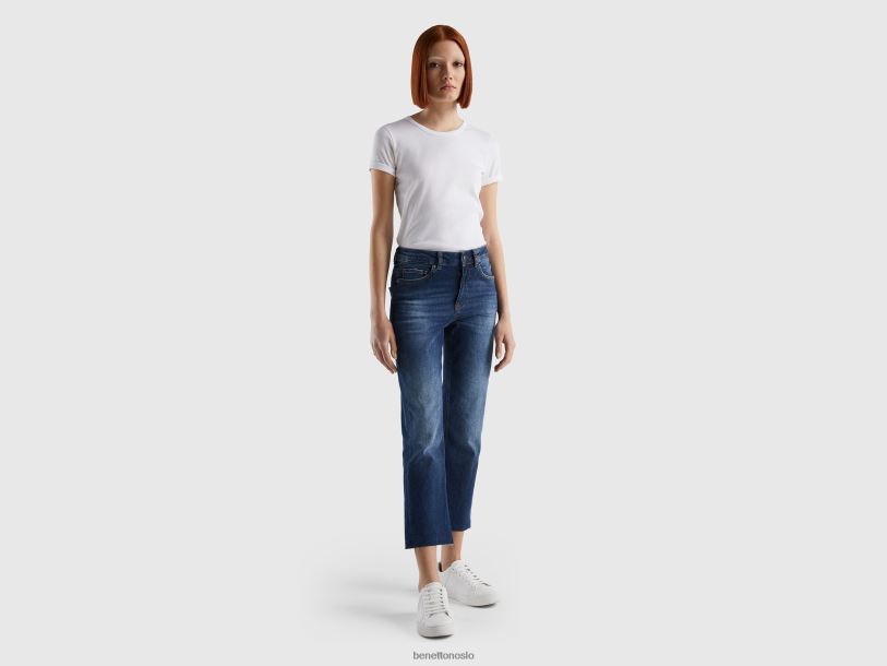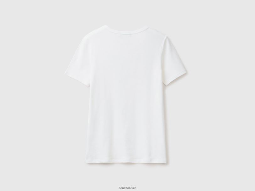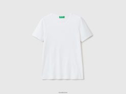 hvit Benetton kvinner langfiber t-skjorte i bomull 20TRB452