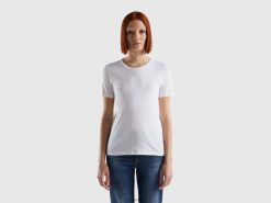 hvit Benetton kvinner langfiber t-skjorte i bomull 20TRB452