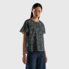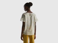 hvit Benetton kvinner mønstret bluse i ren bomull 20TRB480