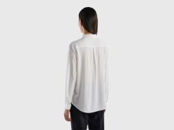 hvit Benetton kvinner regular fit skjorte i bærekraftig viskose 20TRB507