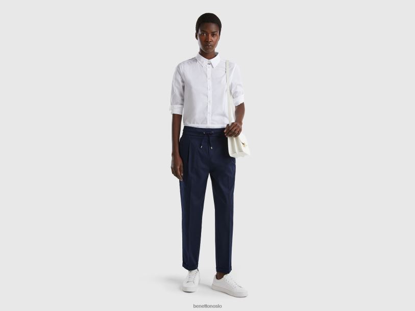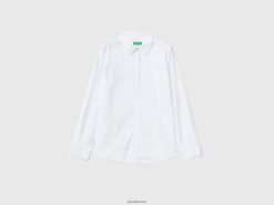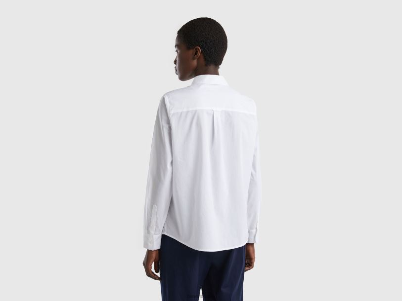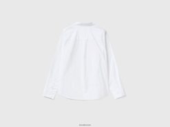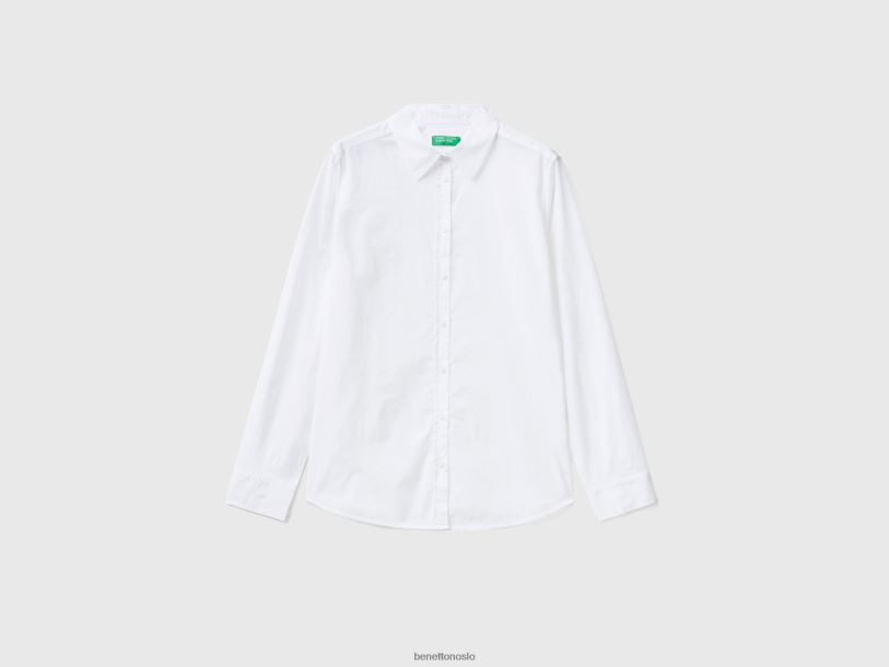 hvit Benetton kvinner skjorte i lett bomull 20TRB532