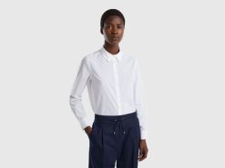 hvit Benetton kvinner skjorte i lett bomull 20TRB532
