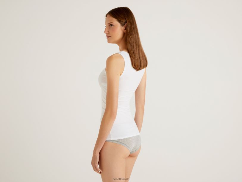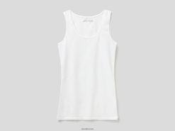 hvit Benetton kvinner tank topp i superstretch økologisk bomull 20TRB4347