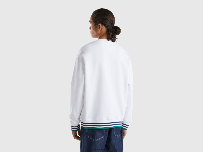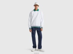 hvit Benetton menn genser med rund hals i ren bomull 20TRB4504