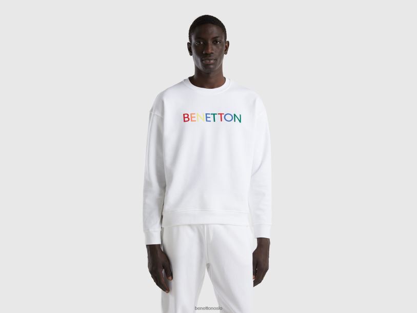 hvit Benetton menn genser med rund hals og logotrykk 20TRB4508