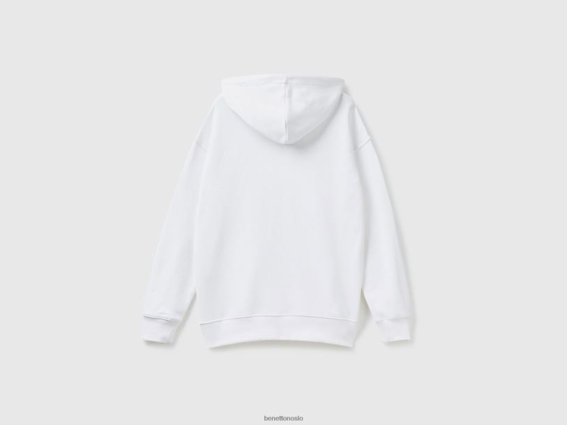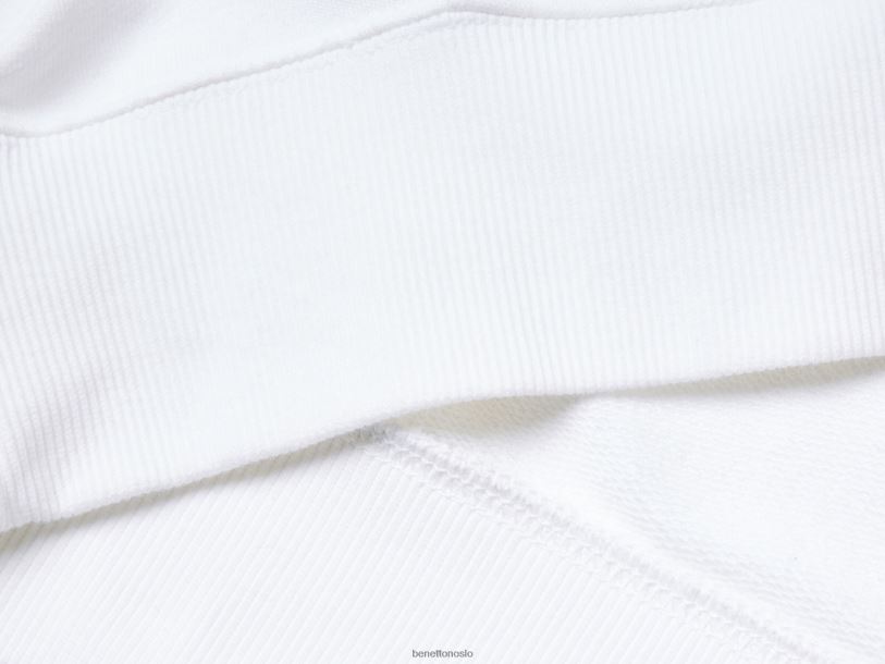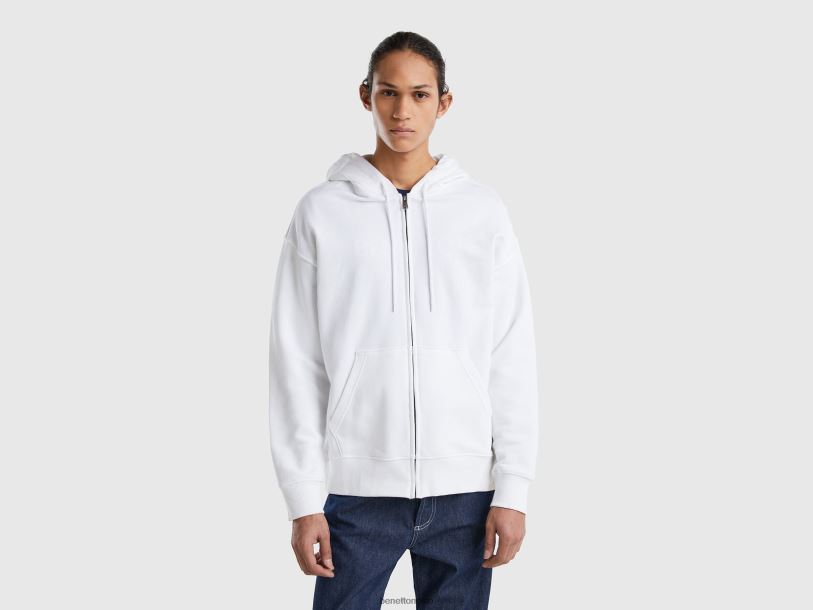 hvit Benetton menn hettegenser i bomull med glidelås 20TRB1328