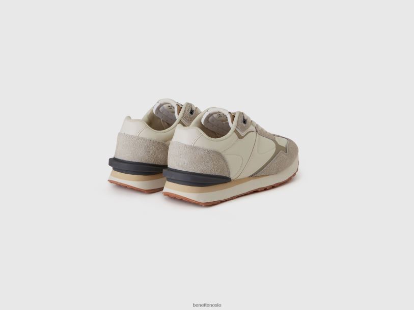 øvre 60 % stoff 40 % storfeskinn inni 100 % stoffsåle 100 % syntetisk