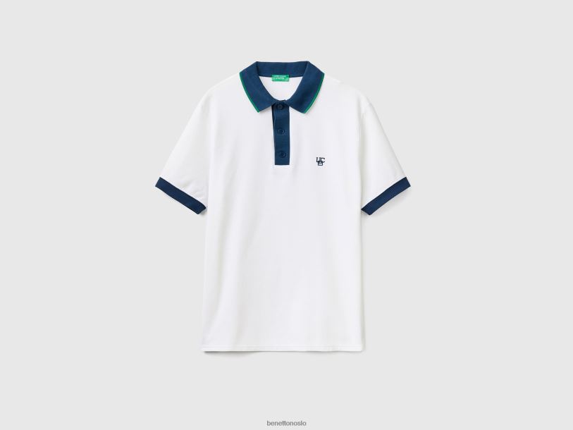 hvit Benetton menn kortermet polo med sammenstøtende kant 20TRB4577