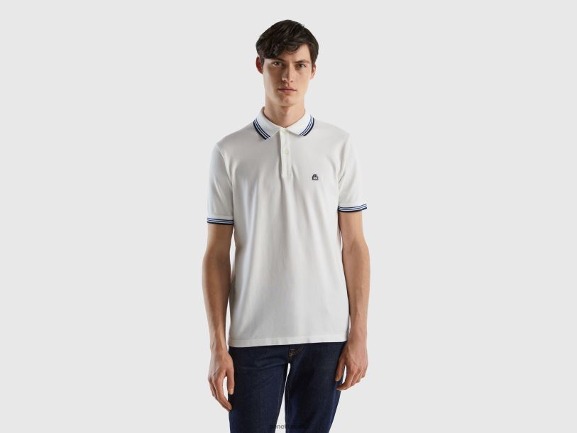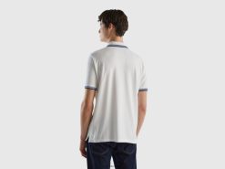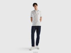 hvit Benetton menn kortermet stretch bomullspolo 20TRB1405