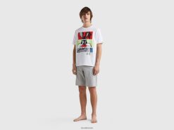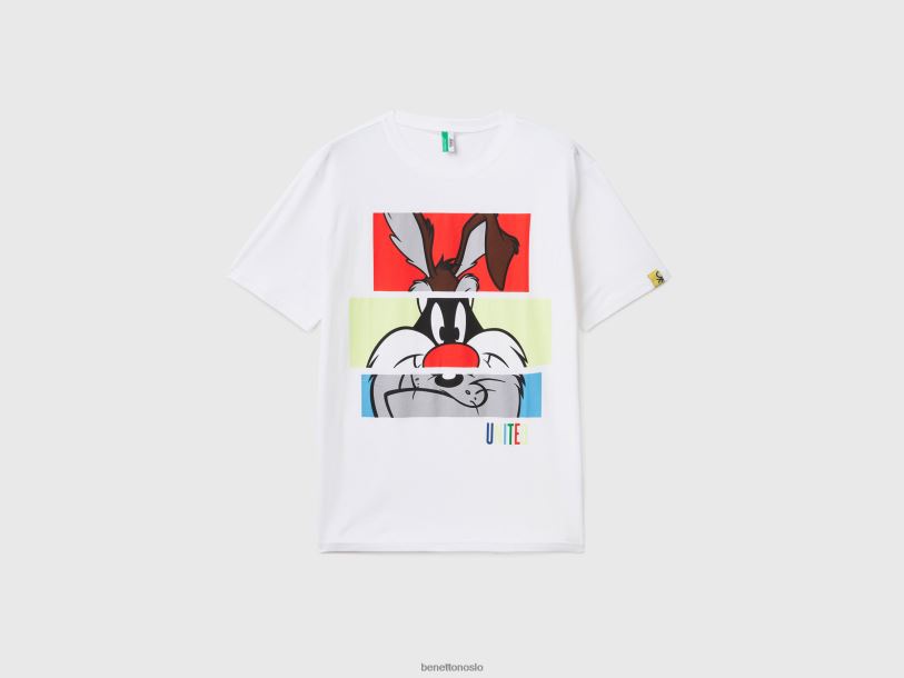 hvit Benetton menn looney tunes t-skjorte med rund hals 20TRB4722