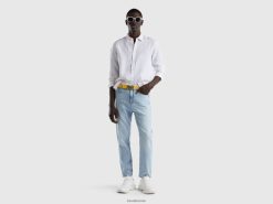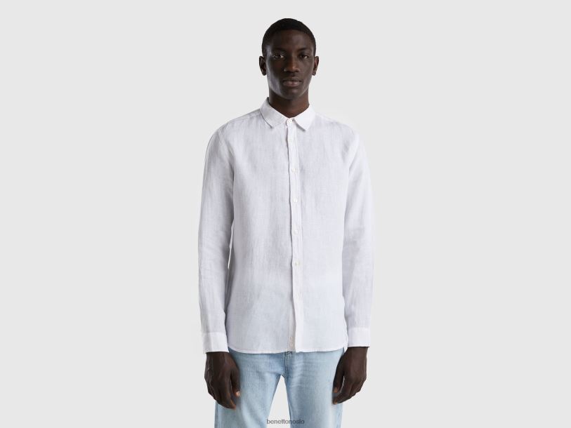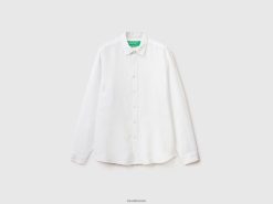 hvit Benetton menn skjorte i rent lin 20TRB1370