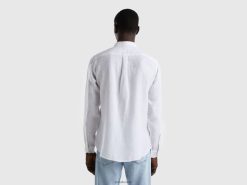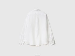 hvit Benetton menn skjorte i rent lin 20TRB4565