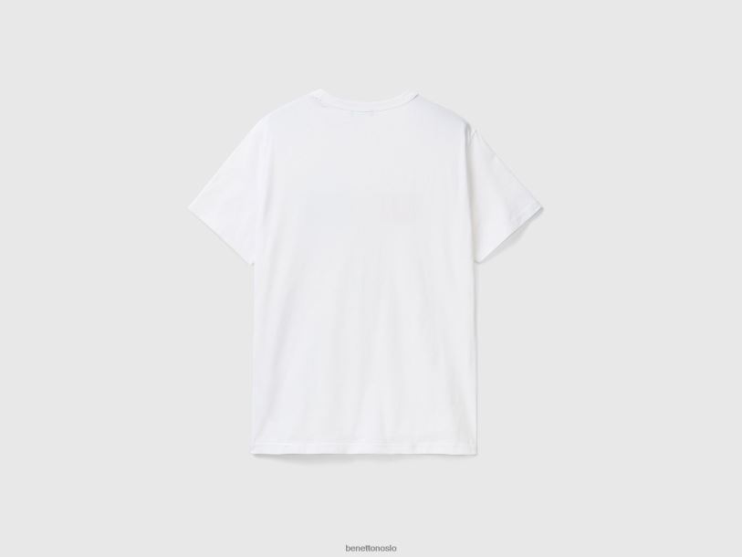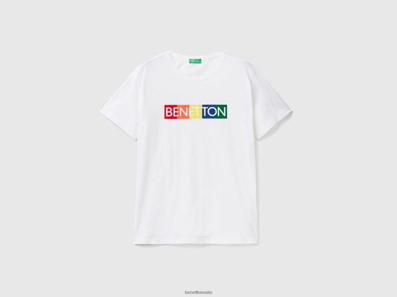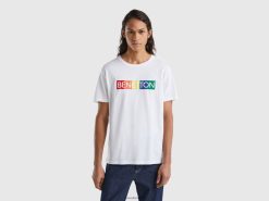 hvit Benetton menn t-skjorte i økologisk bomull med logotrykk 20TRB4455