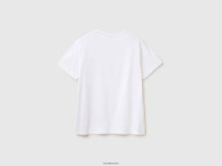 hvit Benetton menn t-skjorte i økologisk bomull med logotrykk 20TRB4496