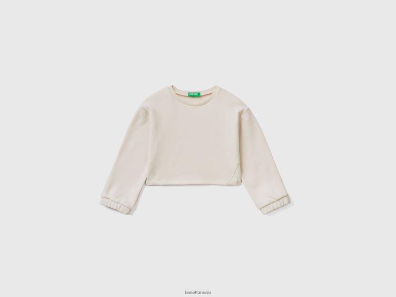 kremhvit Benetton barn cropped sweatshirt i resirkulert stoff 20TRB5619