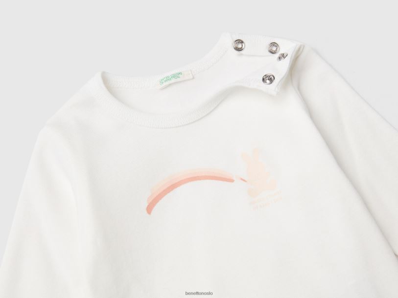 kremhvit Benetton barn langermet t-skjorte i 100 % økologisk bomull 20TRB5813