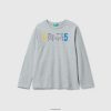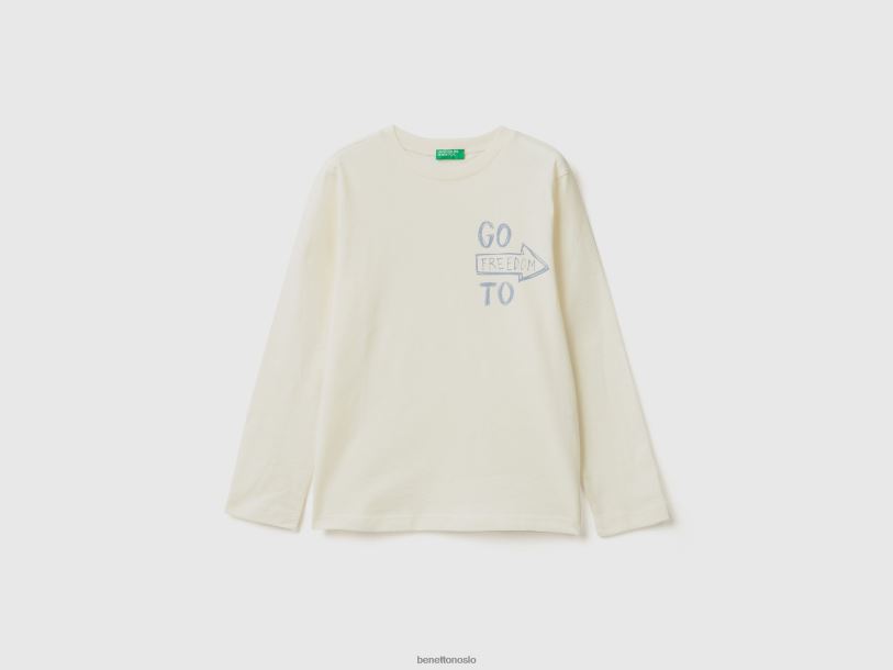 kremhvit Benetton barn langermet t-skjorte med trykk 20TRB4769
