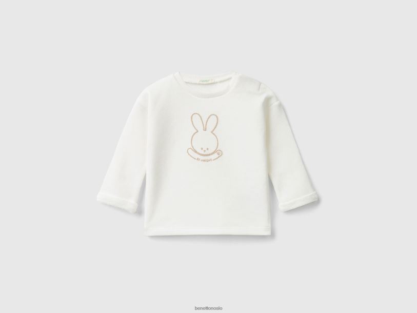 kremhvit Benetton barn myk genser i økologisk bomull med trykk 20TRB5772