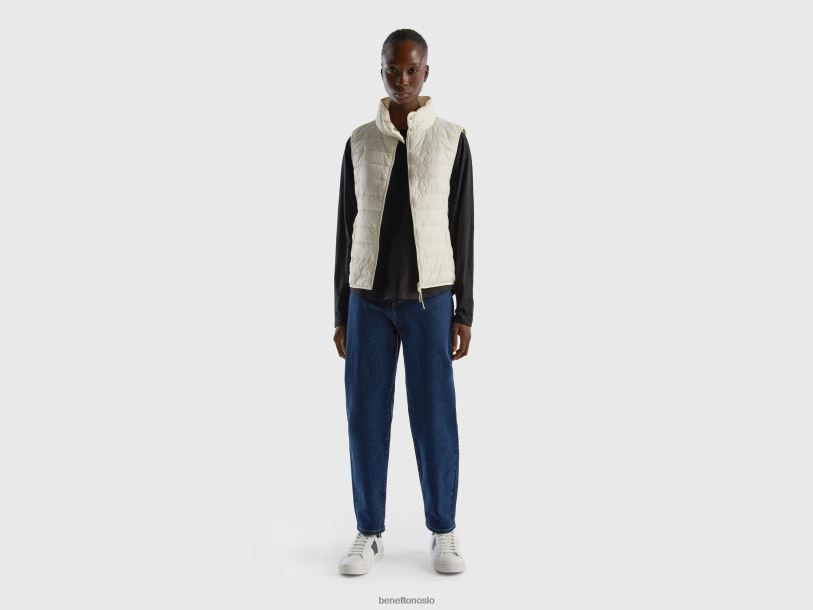 kremhvit Benetton kvinner ermeløs pufferjakke med resirkulert vatt 20TRB282