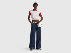 kremhvit Benetton kvinner kremhvit vest i ren bomull 20TRB103