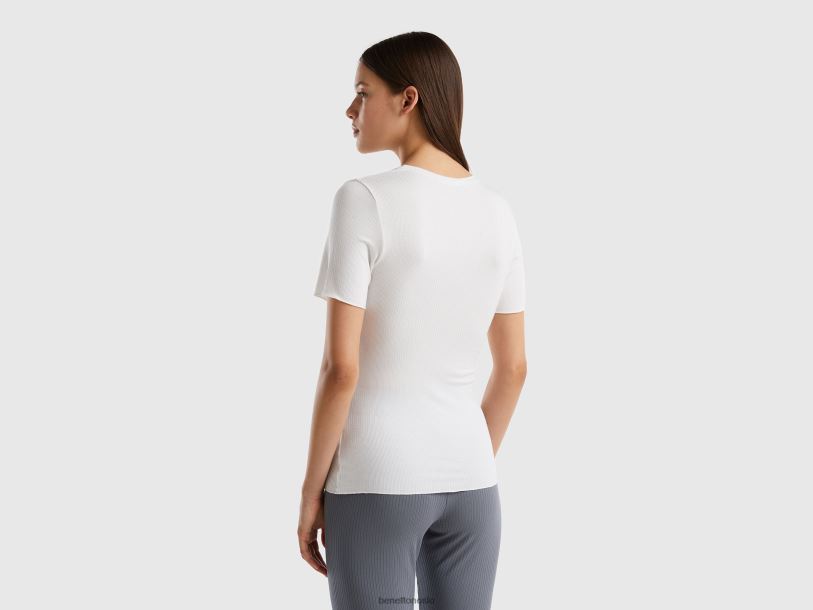 kremhvit Benetton kvinner ribbet t-skjorte i slim fit 20TRB4195