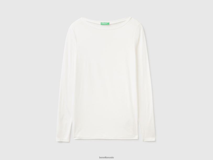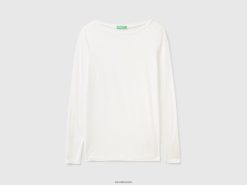 kremhvit Benetton kvinner t-skjorte i bærekraftig stretch viskose 20TRB3884
