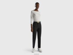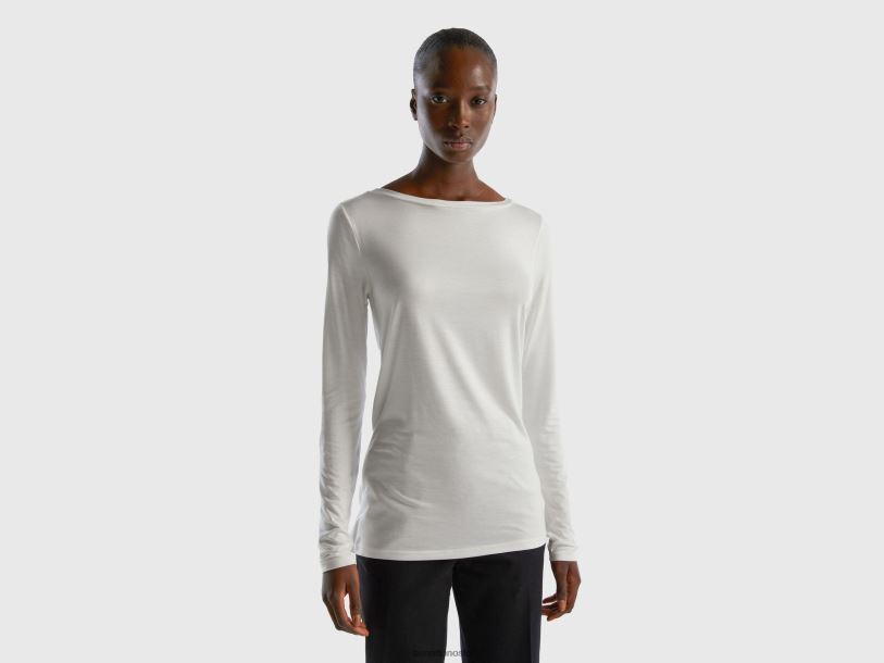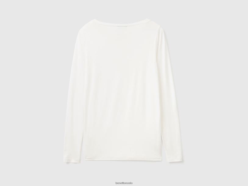 kremhvit Benetton kvinner t-skjorte i bærekraftig stretch viskose 20TRB413