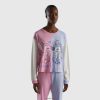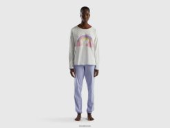 kremhvit Benetton kvinner t-skjorte med trykk i langfiber bomull 20TRB1033