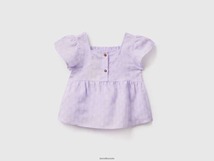 lavendel Benetton barn mønstret bluse i linblanding 20TRB2500