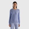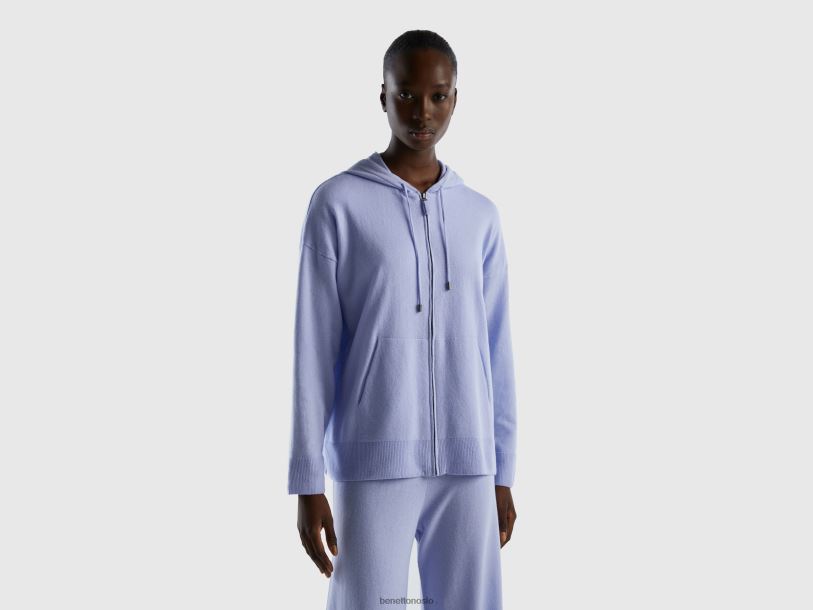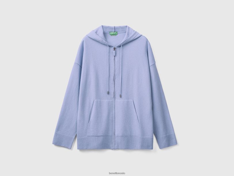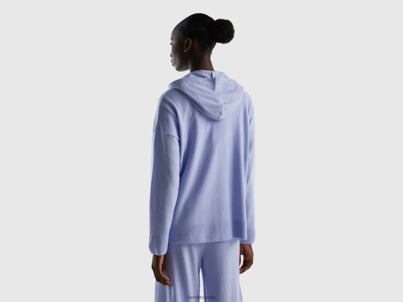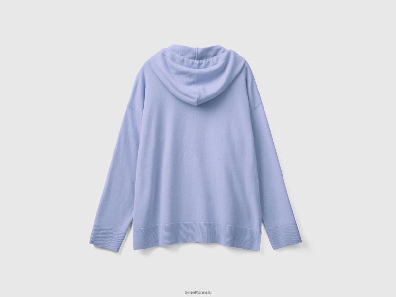 lavendel Benetton kvinner lyseblå genser i kashmirblanding med hette 20TRB4