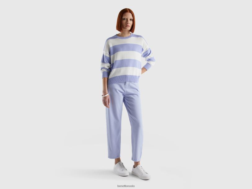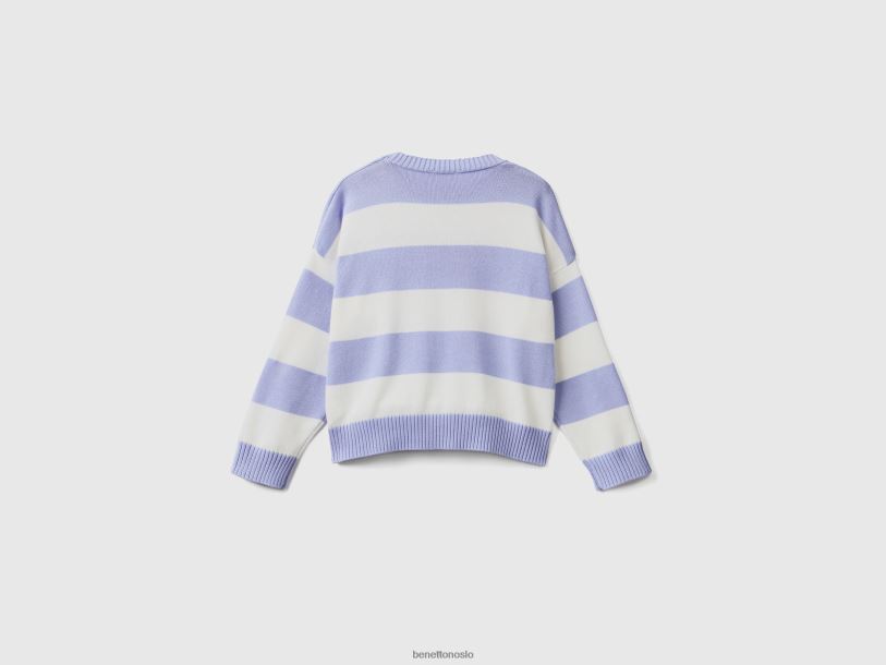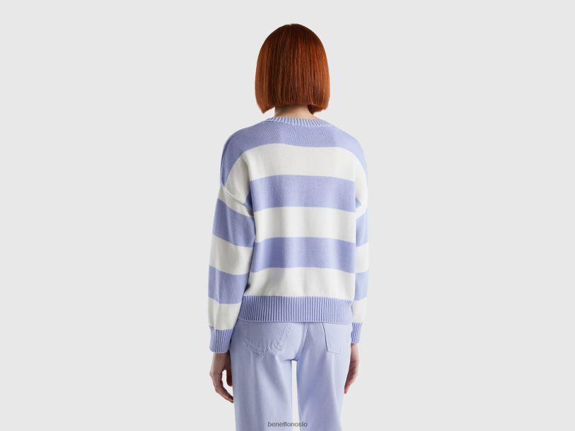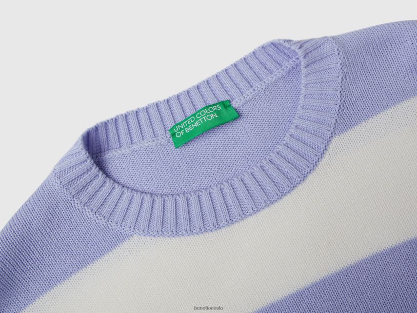 lavendel Benetton kvinner stripete genser i trikotbomull 20TRB99