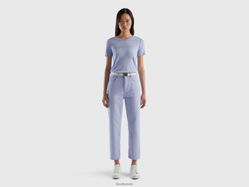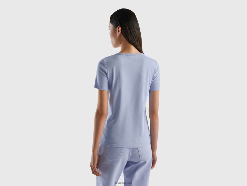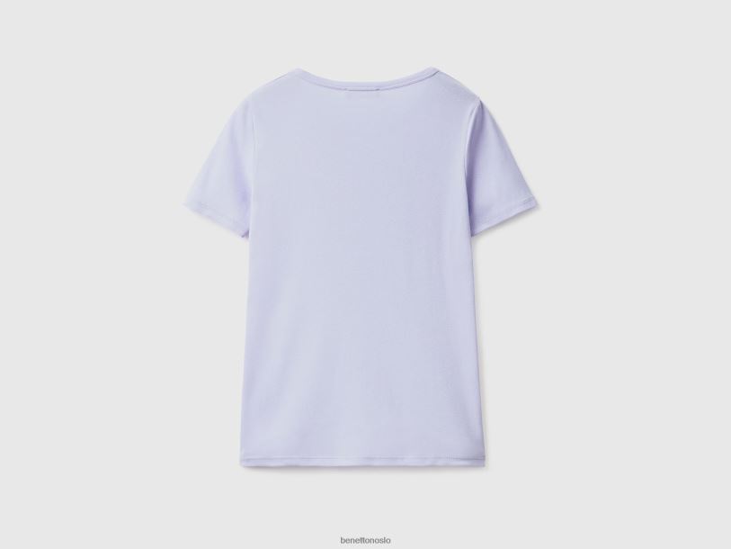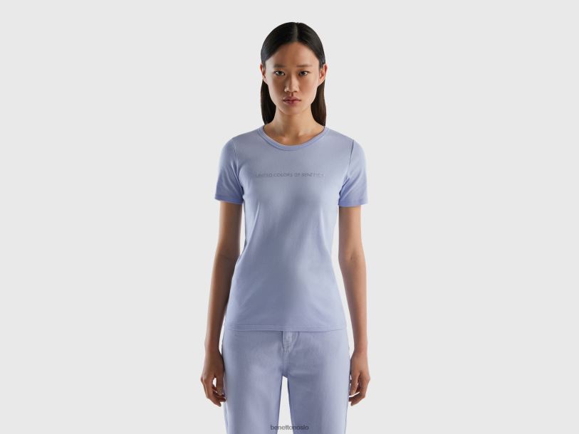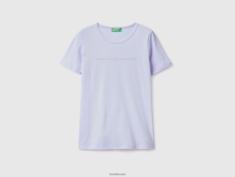 lavendel Benetton kvinner t-skjorte i 100 % bomull med glittertrykk logo 20TRB3875
