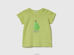 lime Benetton barn T-skjorte i økologisk bomull med trykk 20TRB5803