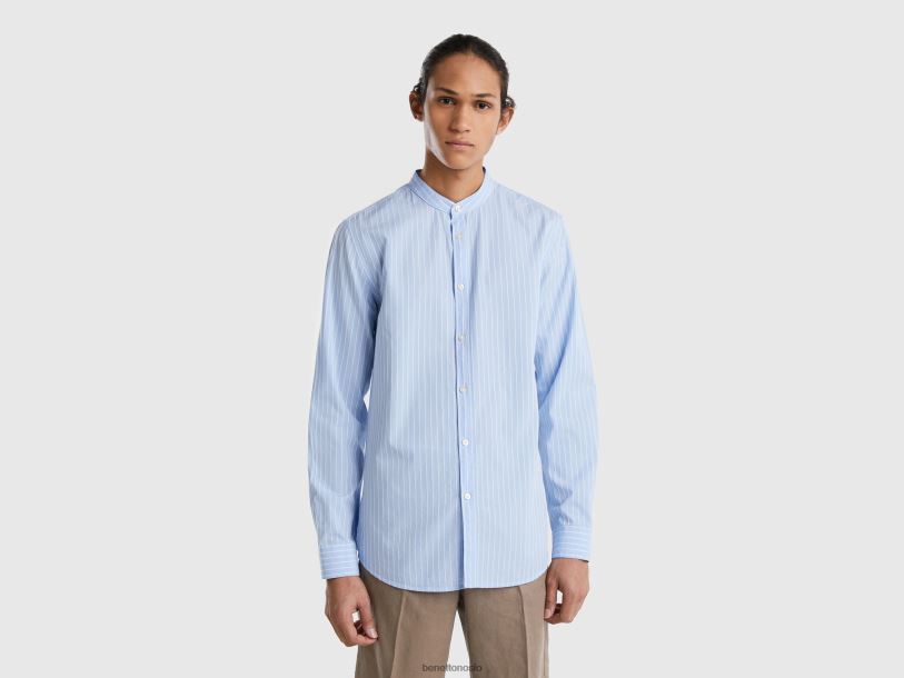 lyse blå Benetton menn 100 % stripet skjorte i bomull 20TRB4539