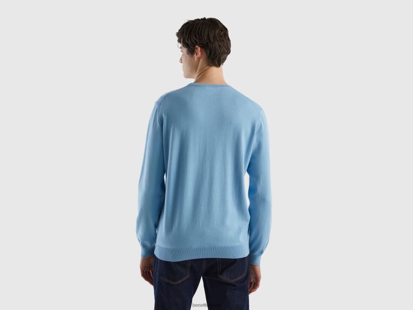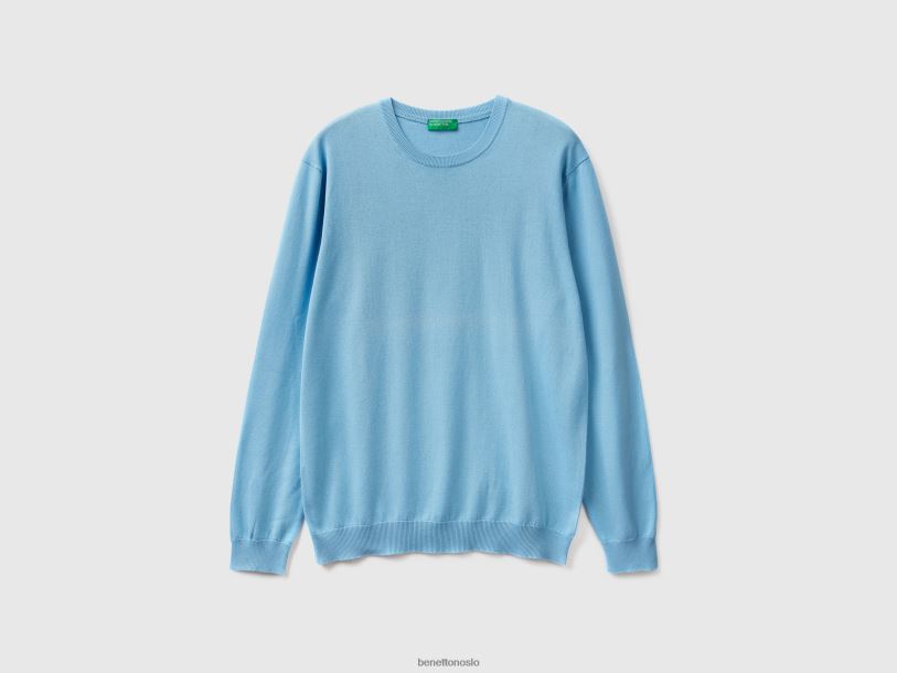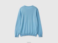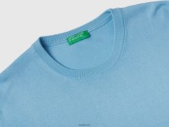 lyse blå Benetton menn genser med rund hals i 100 % bomull 20TRB1177