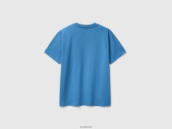 lyse blå Benetton menn T-skjorte i 100 % bomull med lomme 20TRB1254