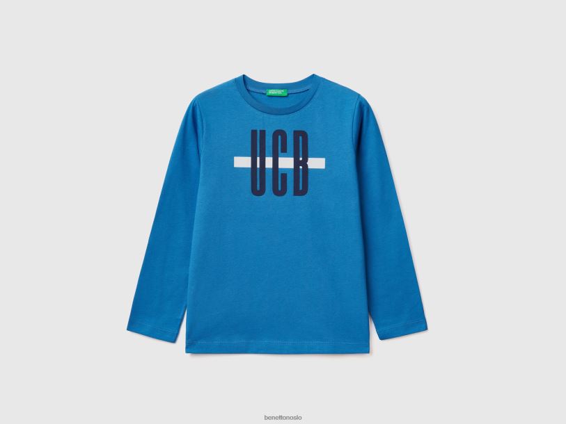 lyseblå Benetton barn langermet t-skjorte i økologisk bomull 20TRB1684