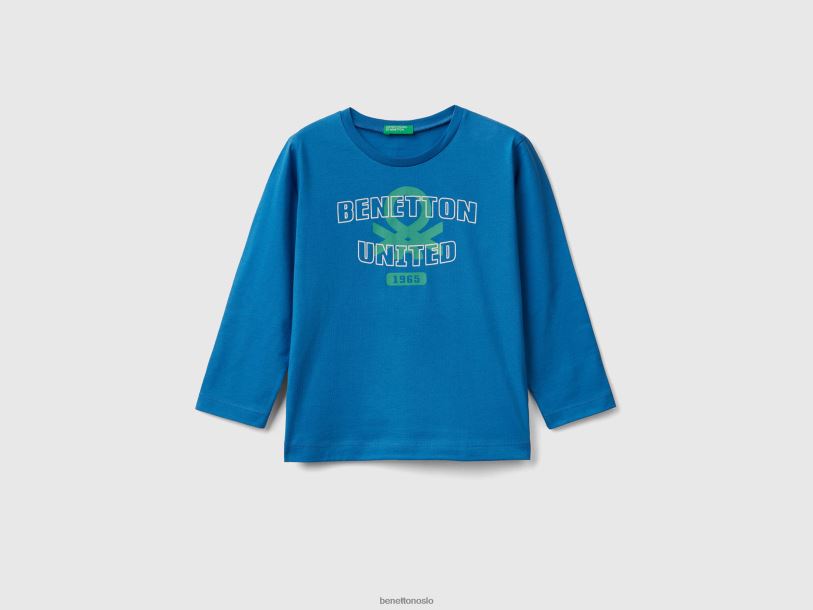 lyseblå Benetton barn langermet t-skjorte i økologisk bomull 20TRB5070