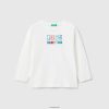 lyseblå Benetton barn T-skjorte i 100 % bomull med logo 20TRB5084