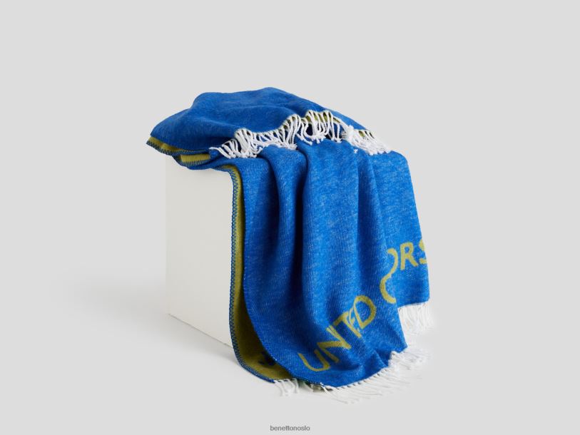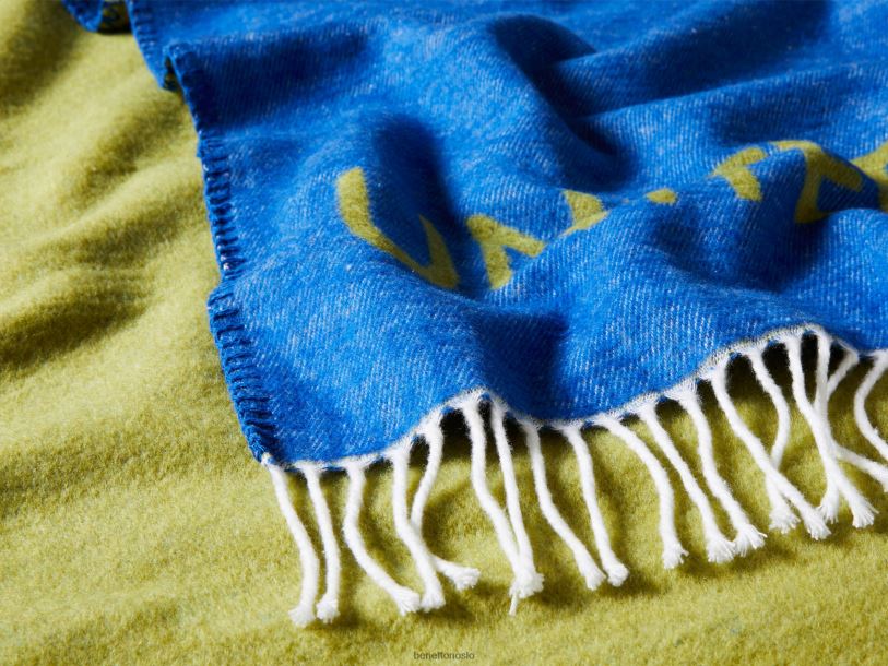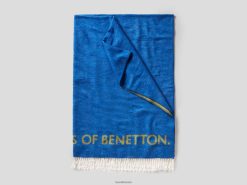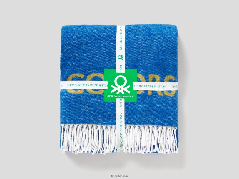 lyseblå Benettonfrynsete teppe med logo 20TRB3382