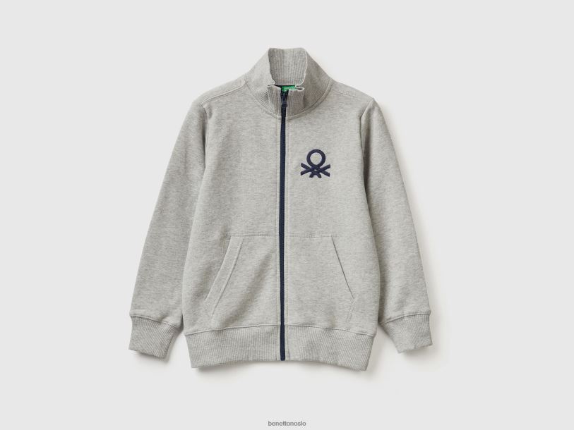 lysegrå Benetton barn genser i ren bomull med glidelås 20TRB1870