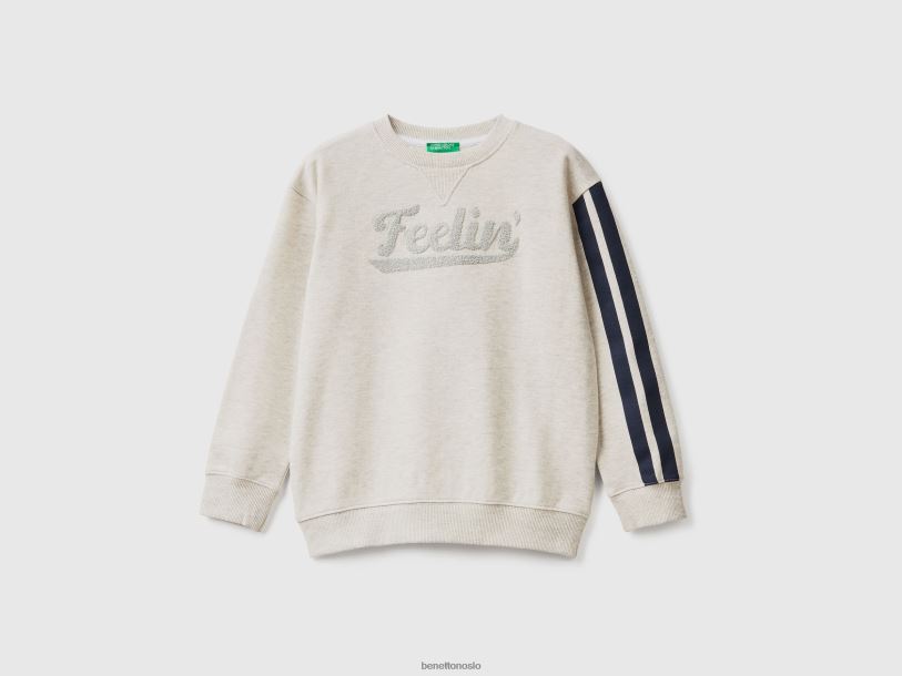 lysegrå Benetton barn genser med rund hals og broderi 20TRB1838
