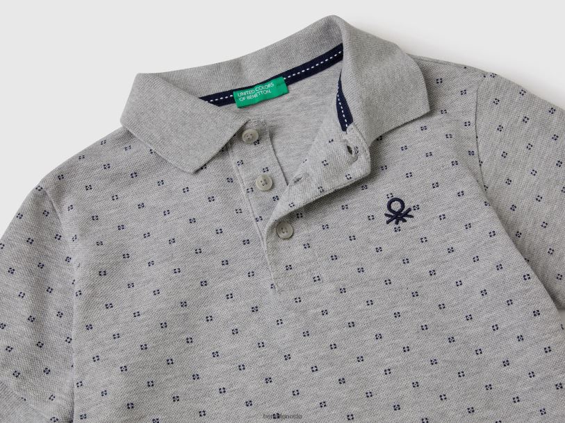 lysegrå Benetton barn mikromønstret polo med smal passform 20TRB1875
