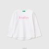 lysegrå Benetton barn t-skjorte med glitrende trykk og lapp 20TRB2897