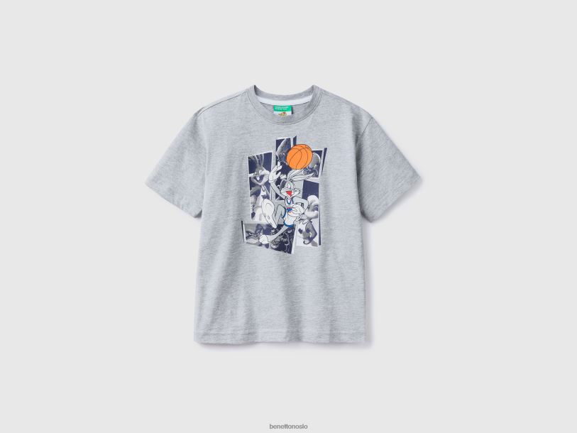 lysegrå Benetton kvinner t-skjorte med båthals i 100 % bomull 20TRB427