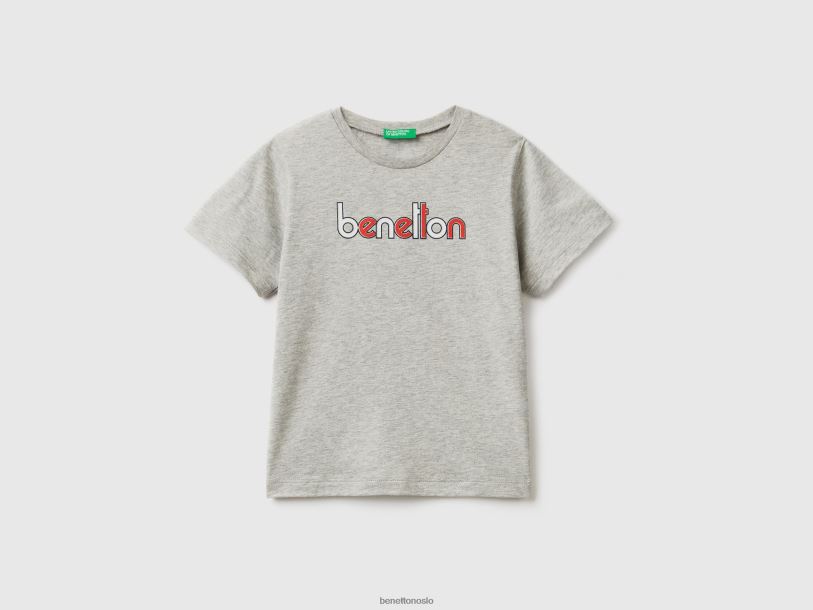 lysegrå Benetton barn t-skjorte med trykk i 100 % økologisk bomull 20TRB2155