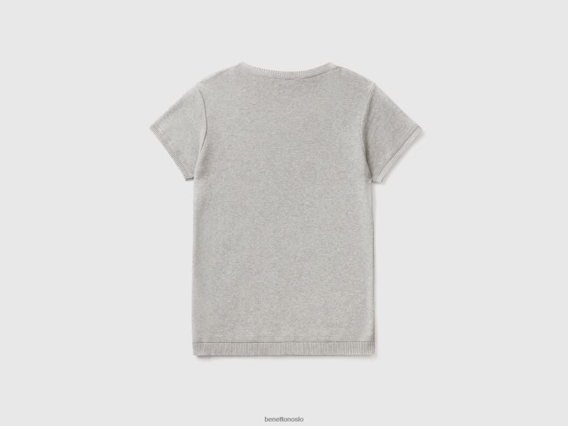 lysegrå Benetton kvinner kortermet genser i 100 % bomull 20TRB212
