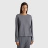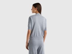 lysegrå Benetton kvinner kortermet topp i kashmirblanding 20TRB4193