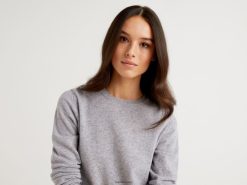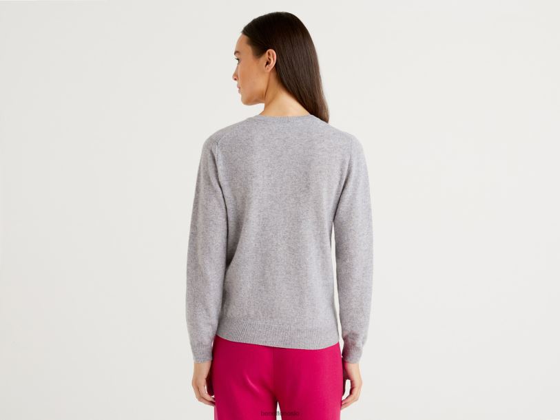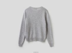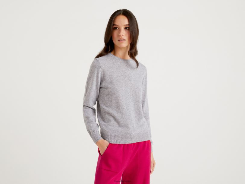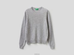 lysegrå Benetton kvinner lys grå genser med rund hals i merinoull 20TRB3644